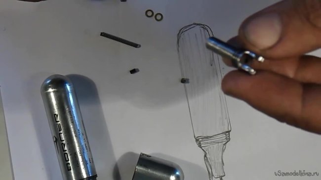 Следующим шагом нарезаем резьбу на самом баллончике, чтобы туда можно было накрутить конструкцию с колесиком и кремнем.