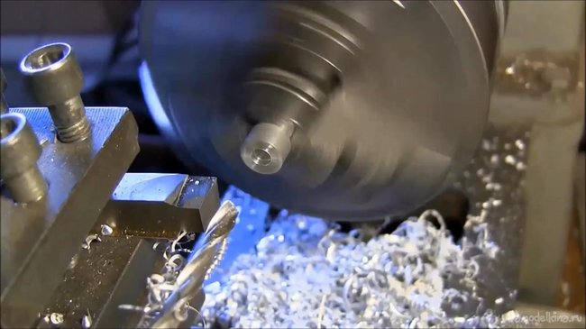 Следующим делом нам необходимо изготовить переходник для объектива. Берем алюминиевый прут и точим его так, чтобы получить диаметр 8 мм.