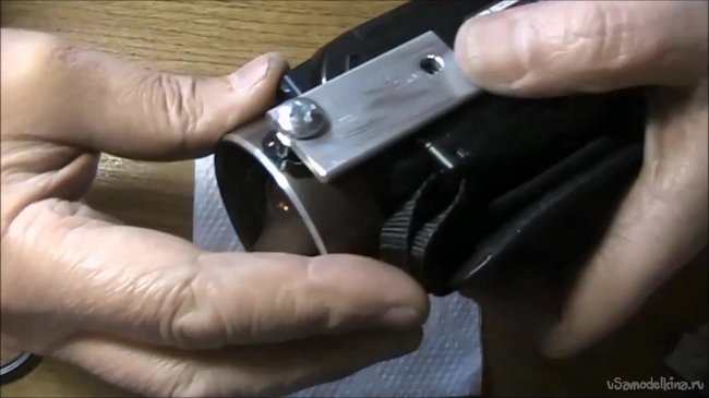 Итак, первым делом нам нужно спилить все лишнее с корпуса объектива. Автор делает это на специальном станке, однако можно использовать альтернативные инструменты.