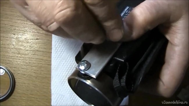 Наша линза готова. Теперь можно устанавливать ее на камеру. Для этого автор использует специальную алюминиевую пластину с двумя отверстиями для винта 6-ки.