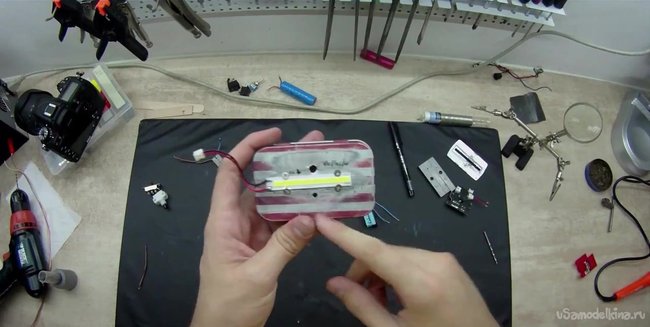Первым делом предлагаем вам ознакомиться с процессом изготовления накамерного прожектора в видеоролике