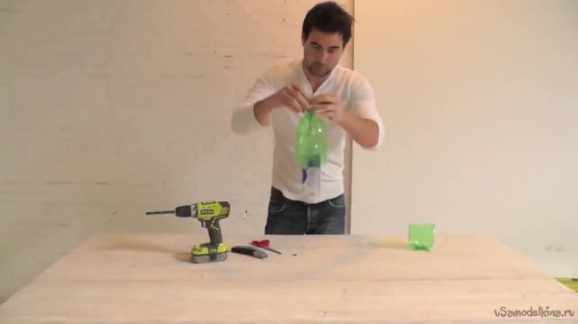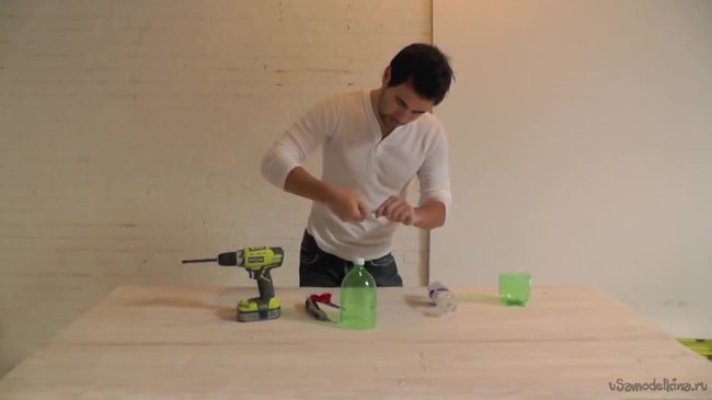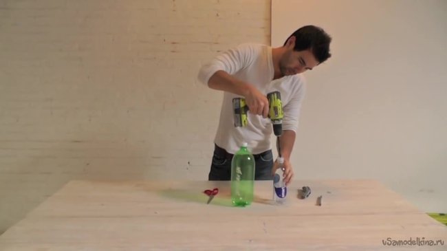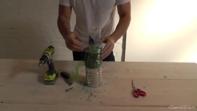 Сразу отметим, что одна из двух пластиковых бутылок должна быть тоньше второй. Приступим.