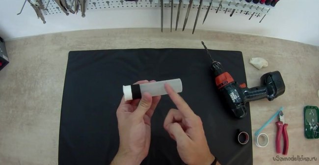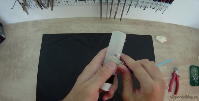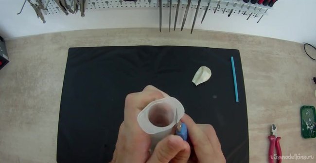 Далее нам нужно взять надфиль и увеличить диаметр отверстия под диаметр трубочки.