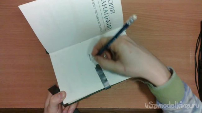 Когда мы разобрались с местом крепления петли на книге, берем карандаш и обводим ее, отметив место надреза.