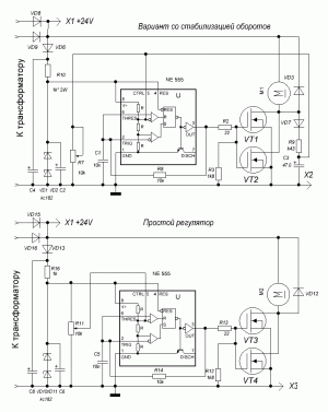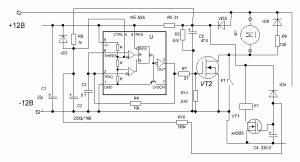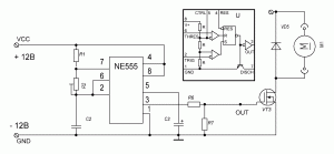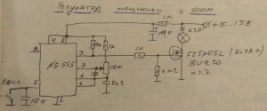 Однажды понадобился мне "девайс" для регулировки скорости вращения кулера. Для чего именно уже не помню. С начала пробовал через обычный переменный резистор, он сильно грелся и это было не приемлемо для меня. В итоге покопавшись в интернете нашел схему на мне уже знакомой микросхеме NE555. Это была схема обычного ШИМ регулятора с скважностью (длительностью) импульсов равной или меньше 50% (позже приведу графики как это работает). Схема оказалось очень простой и не требовала настройки, главное было не накосячить с подключением диодов и транзистора. Первый раз его собрал на макетной плате и испытал, все заработало с пол оборота. Позже уже развел небольшую печатную плату и аккуратнее все выглядело=) Ну теперь взглянем на саму схему!