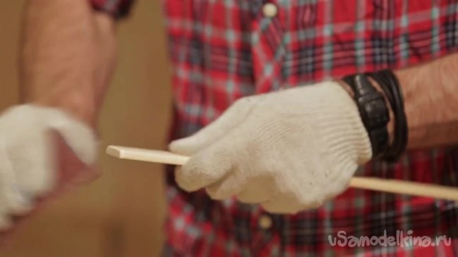 Следующим делом нам необходимо зачистить полученные куски деревянной рейки наждачной бумагой.