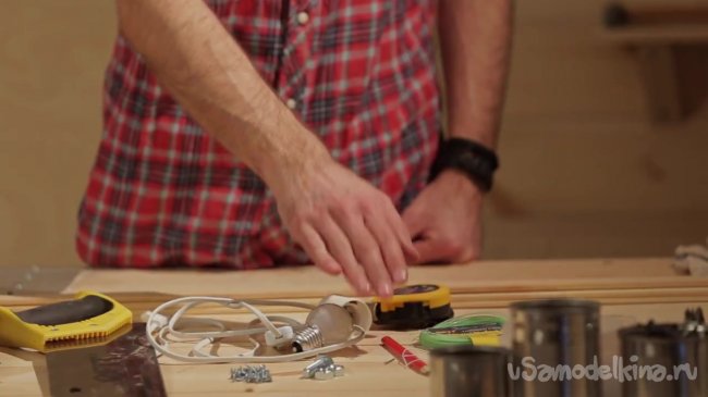 Далее берем деревянную рейку, из которой мы будем выпиливать ножки и боковые стенки для нашей лампы.