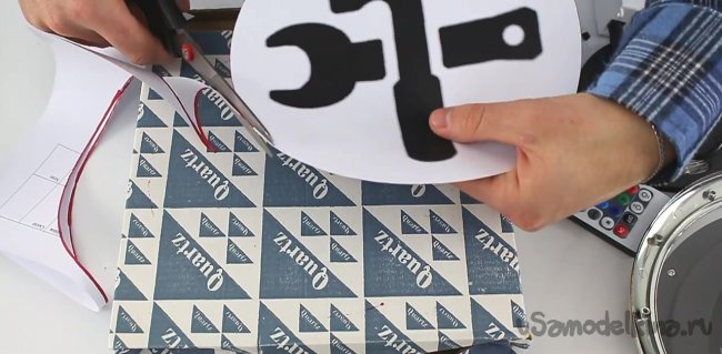 Берем канцелярский нож, чтобы проделать небольшое отверстие на боковой части коробки часов под провода.