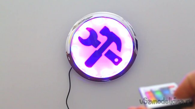 Логотип с подсветкой готов. Осталось подключить блок питания и включить его в розетку и любоваться собственным произведением.