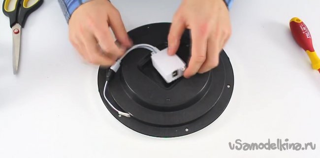 Подключаем контролер светодиодной ленты и приклеиваем его на место батареек клеевым пистолетом.