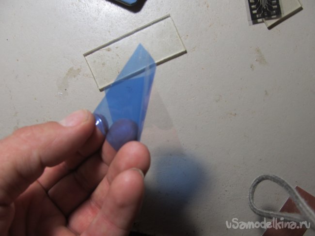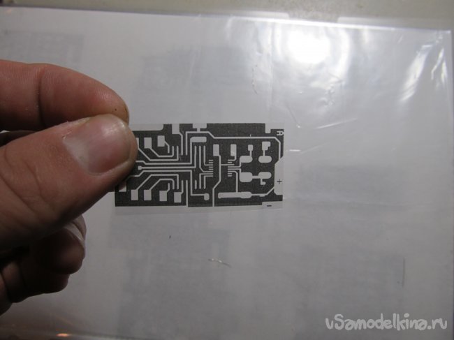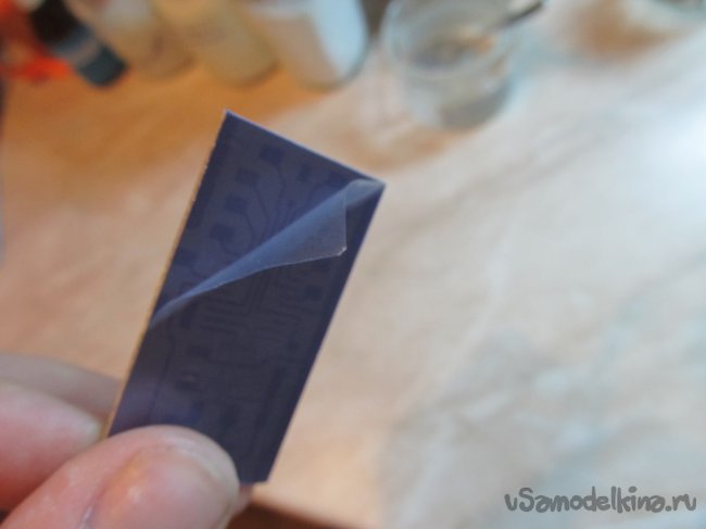 Далее на фоторезисте отрываем защитную прозрачную пленку