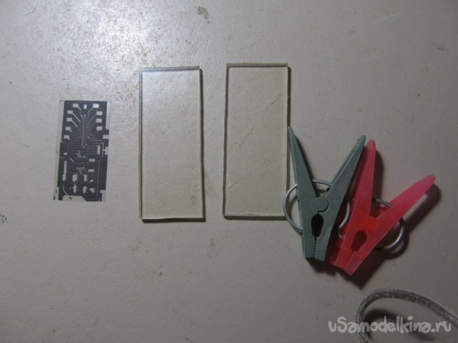 Далее нам потребуется два куска оргстекла и две прищепки можно использовать коробку от CD-дисков