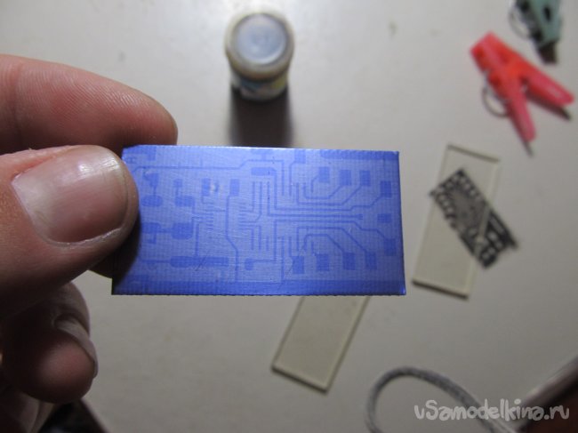 И аккуратно приклеиваем к текстолиту, важно что бы не было никаких пузырьков. Хорошо проглаживаем чтобы все хорошо приклеилось