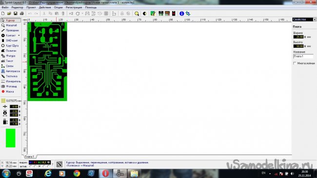 Берем текстолит и вырезаем его по размеру требуемой платы