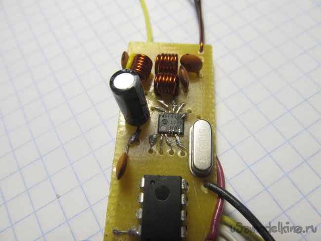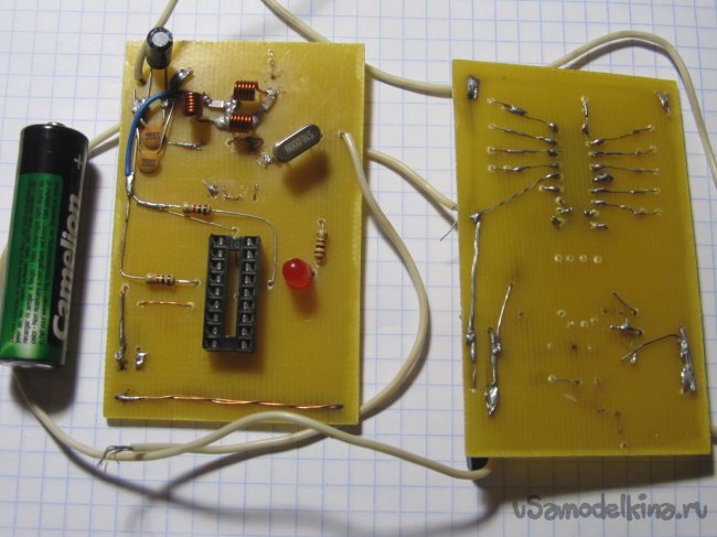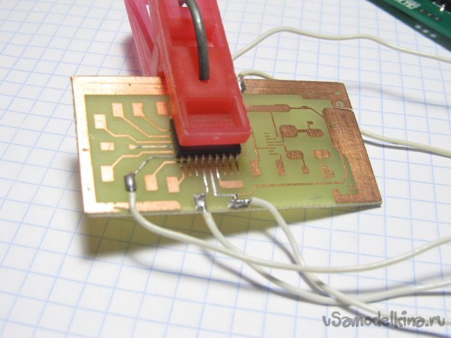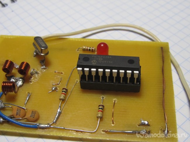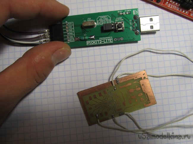 Когда все припаяно, хорошо все проверяем. Далее берем PIC16F628A, его нужно запрограммировать. Я использовал PIC KIT 2 lite и самодельную панельку