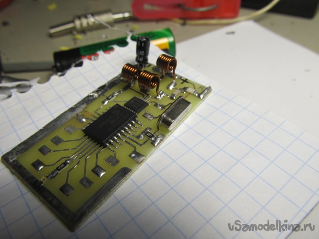 Файл TX-это для передатчика, а RX - для приемника. Главное потом не перепутать микроконтроллеры. И припаиваем микроконтроллеры на плату. После того как соберете, ни в коем случае не подключайте нагрузку сразу к плате, а то спалите все. Нагрузку к плате следует подключать через мощный транзистор как на фото