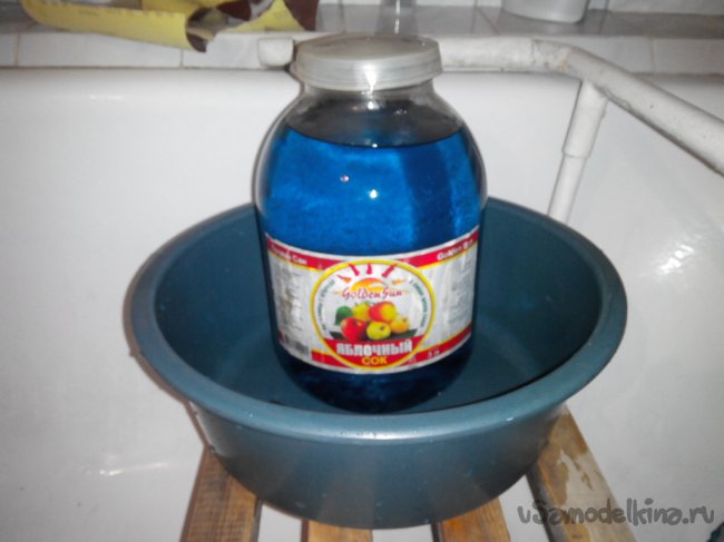 Подогреваем раствор (я банку постепенно подогреваю теплой водичкой, так реакция быстро происходит 15 мин, банку просто ставлю в таз), потом переливаю в таз меньшим диаметром, кидаем туда плату вверх медью и ждем=)Через 30 сек появится реакция,периодически поднимаем и посматриваем плату.