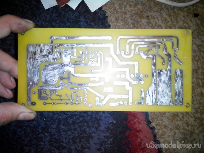 Теперь удаляем тонер при помощи ацетона, растворителя или еще какой едкой дряни которая растворяет краску. И должно получится что-то вроде этого!