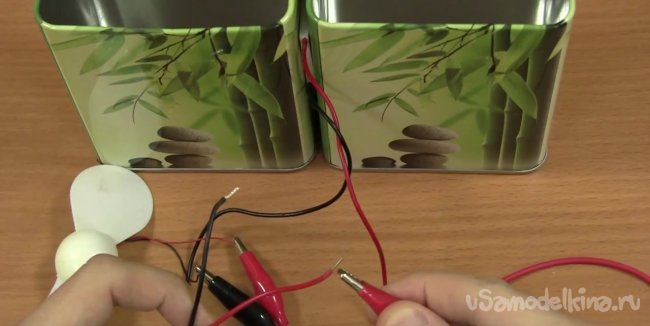 После этого подключаем моторчик к элементу, сохраняя полярности проводов.