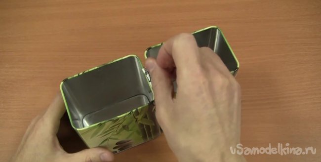 Далее при помощи клипсы необходимо соединить банки вместе, зафиксировав таким образом и элемент.