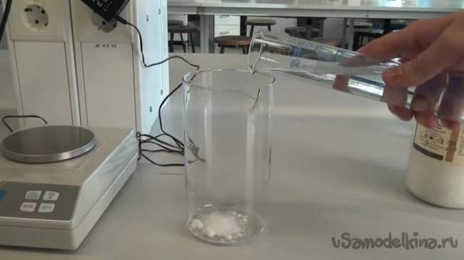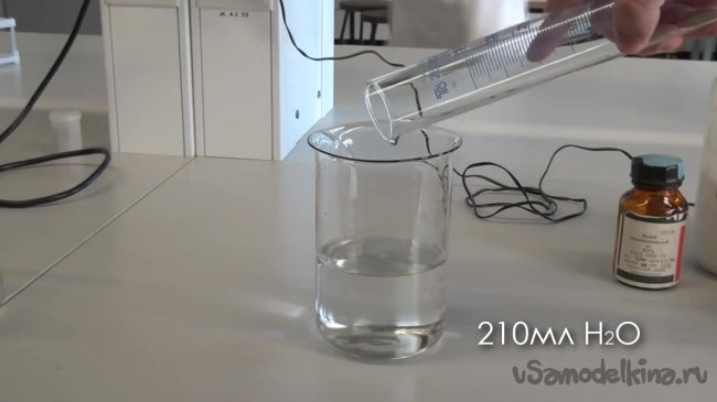 Наконец добавляем 230 мл дистиллированной воды. На этом приготовление последнего раствора пока не закончилось.