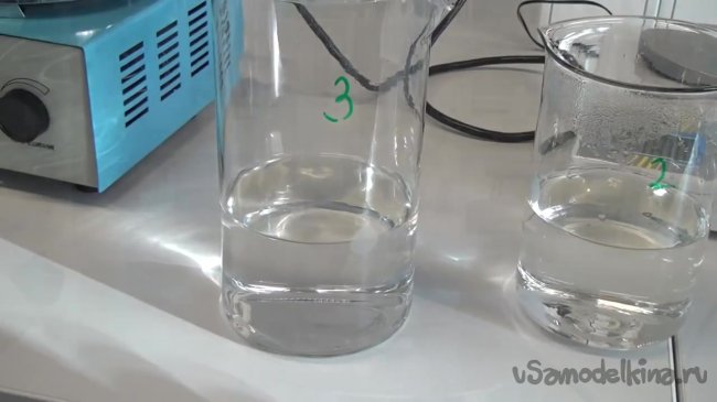 После этого доводим объем раствора третьего стакана до объема равного примерно трети литра.