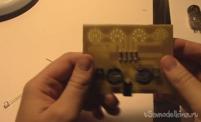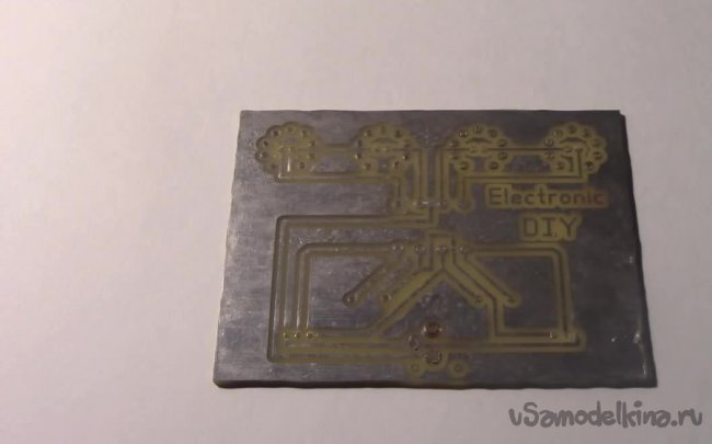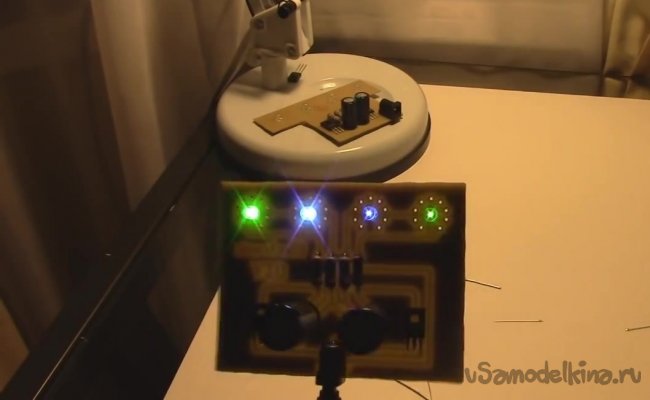 Первым делом нужно изготовить печатную плату, схему которой автор самоделки дает в описании видеоролика. Как можно собственноручно изготовить печатную плату, вы можете узнать из предыдущих материалов.