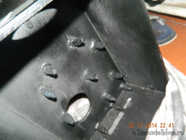 Далее разметил местоположение стоек-креплений и приклеил их термоклеем.