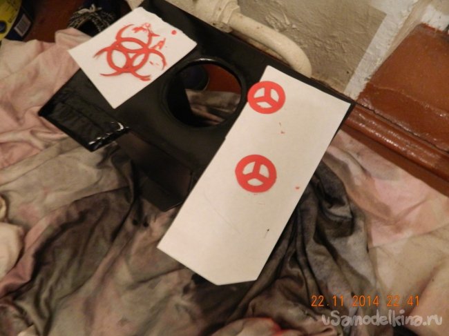 Нарисовал на картоне, вырезал и покрасил красной краской наклейки