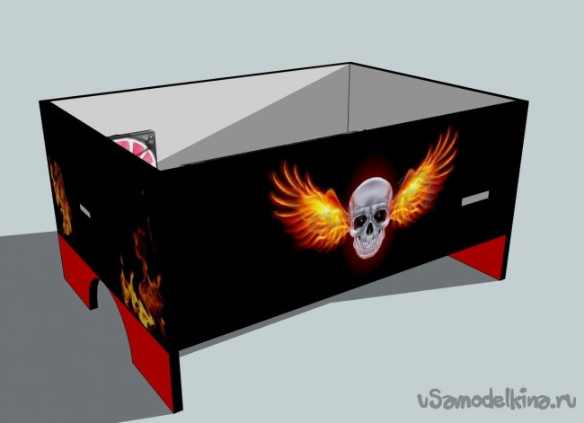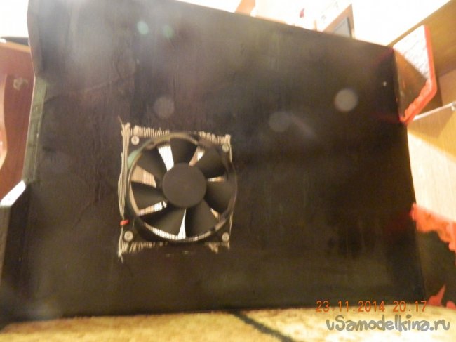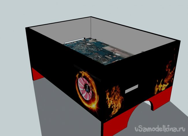 Далее измерил плату ноутбука и прикинул размеры на фанере. Расчертил все стенки на материале и принялся выпиливать. Пилил долго и нудно с помощью ножовки. Вот что вышло