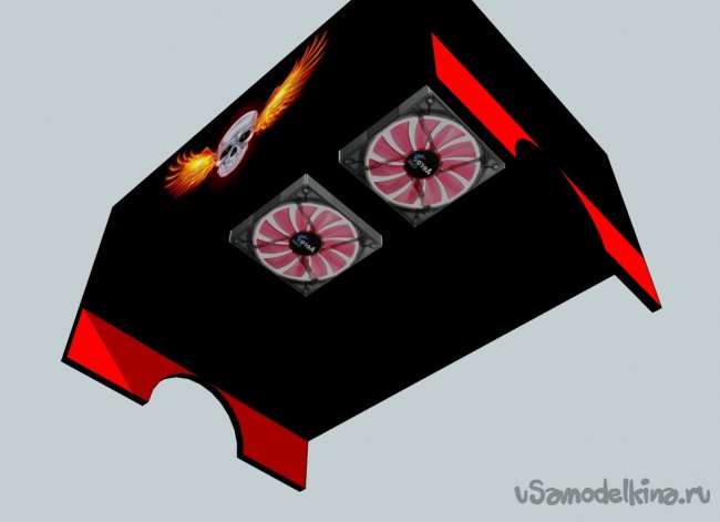 Дальше - лучше: отмерил и разметил вырезы под все разъемы и под вентиляторы. Вентилятор на вдув решил расположить снизу, чтоб обдувал тепловые трубки. Вырезал тоже долго вечерами, используя шуруповерт со сверлом, нож и напильники в следующем порядке: