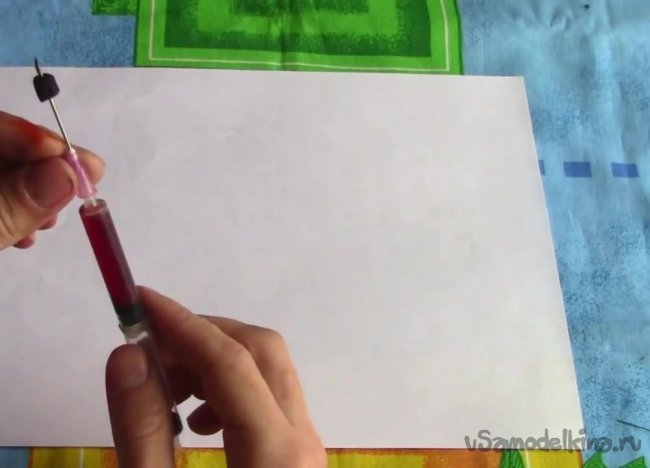 Следующим шагом берем толстую иглу для шприца. Автор самоделки советует использовать именно толстую иглу, поскольку она прочнее, а также потому что содержимое шприца будет быстрее впрыскиваться.