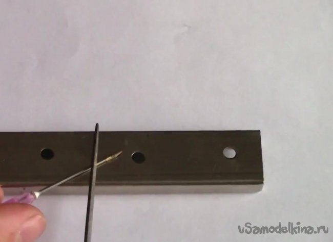 После этого берем надфиль и чуть выше середины иглы слегка пропиливаем.