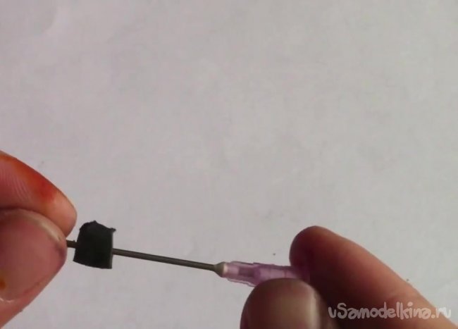 Берем любой кусок резины. Из нее делаем заглушку для отверстия в игле.
