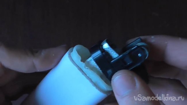 После того, как отверстие проделано, нужно позаботиться о том, чтобы точилка оказалась на своем месте. Можно придать точилке слегка круглую форму, чтобы она лучше сочеталась с зажигалкой. Для этого можно использовать напильник.