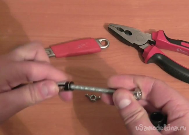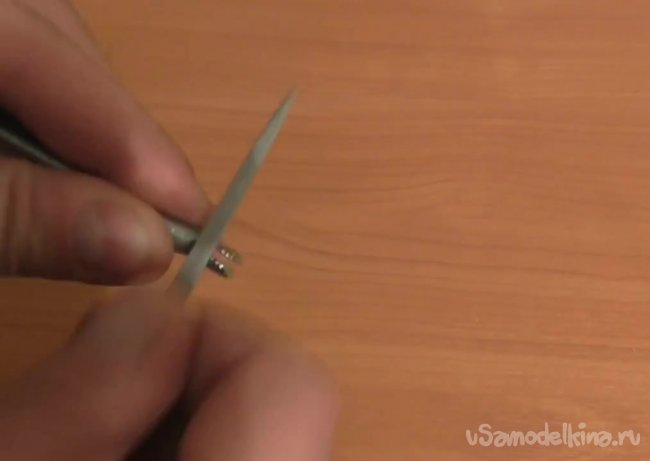 Наконец вставляем лезвие в прорез на болте. Для большей фиксации на обеих сторонах лезвия можно использовать по куску бумаги.