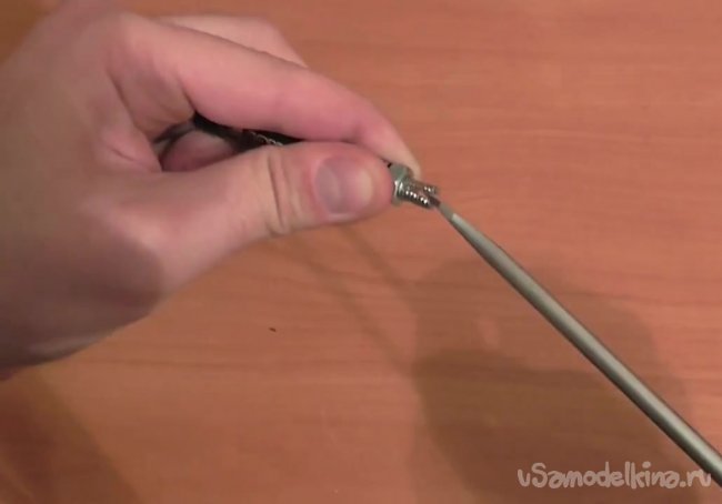 Наш макетный нож готов. Осталось лишь поджать его барашком и гайкой с обеих сторон, после чего его можно смело использовать при изготовлении собственных самоделок. По словам автора, такой нож имеет одно важное отличие, по сравнению с макетными ножами, продающимися в магазинах: самодельный нож значительно тяжелее, что упрощает работу с ним.