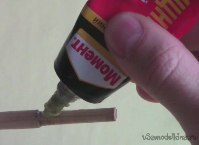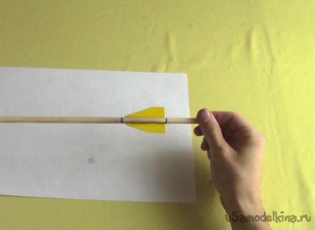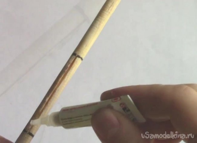 Берем клей и приклеиваем трубку к краю стрелы.