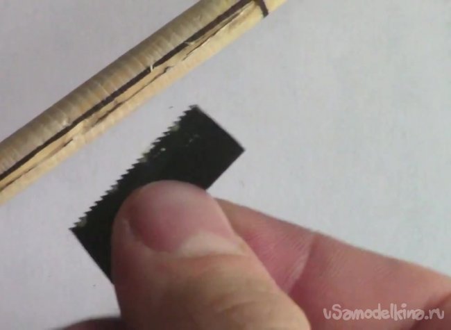 Куском полотна для ножовки придаем канавке более ровную форму.