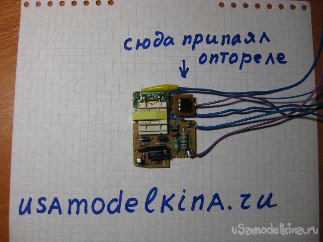 Делаем аккуратную панельку для оптореле, припаиваем его контакты согласно схемы к плате из зарядника, заливаем все клеевым пистолетом. Естественно не забываем об отводах.