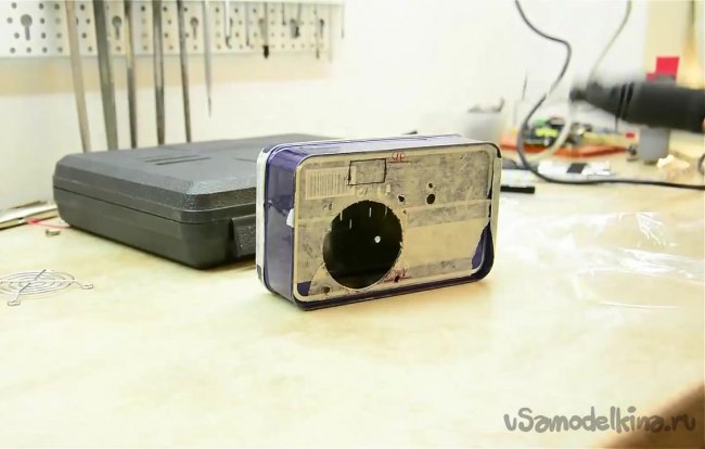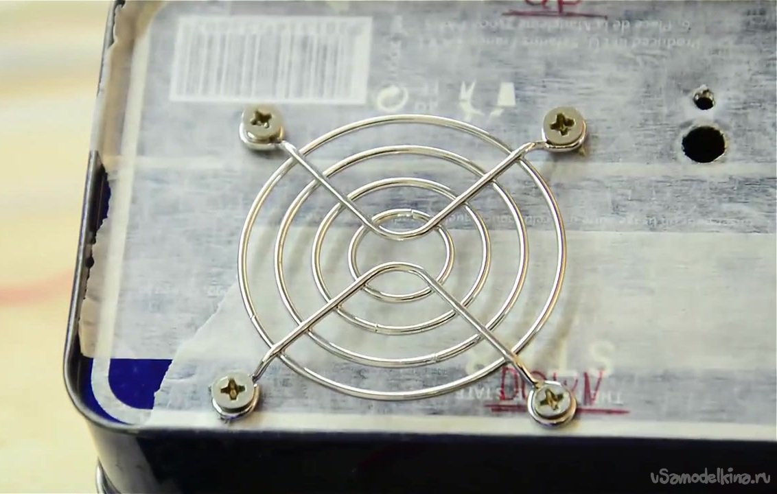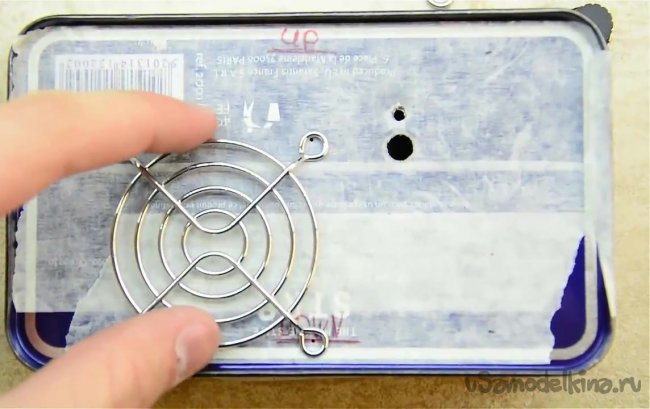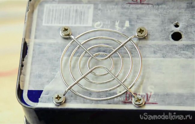 Затем проделываем большое отверстие под диаметр вентилятора, чтобы воздух мог входить в конструкцию.