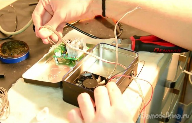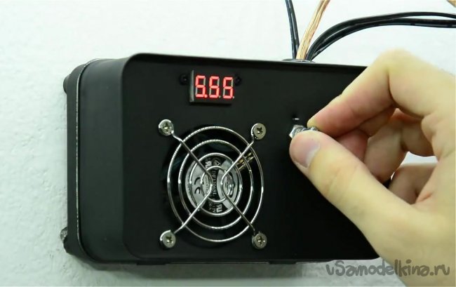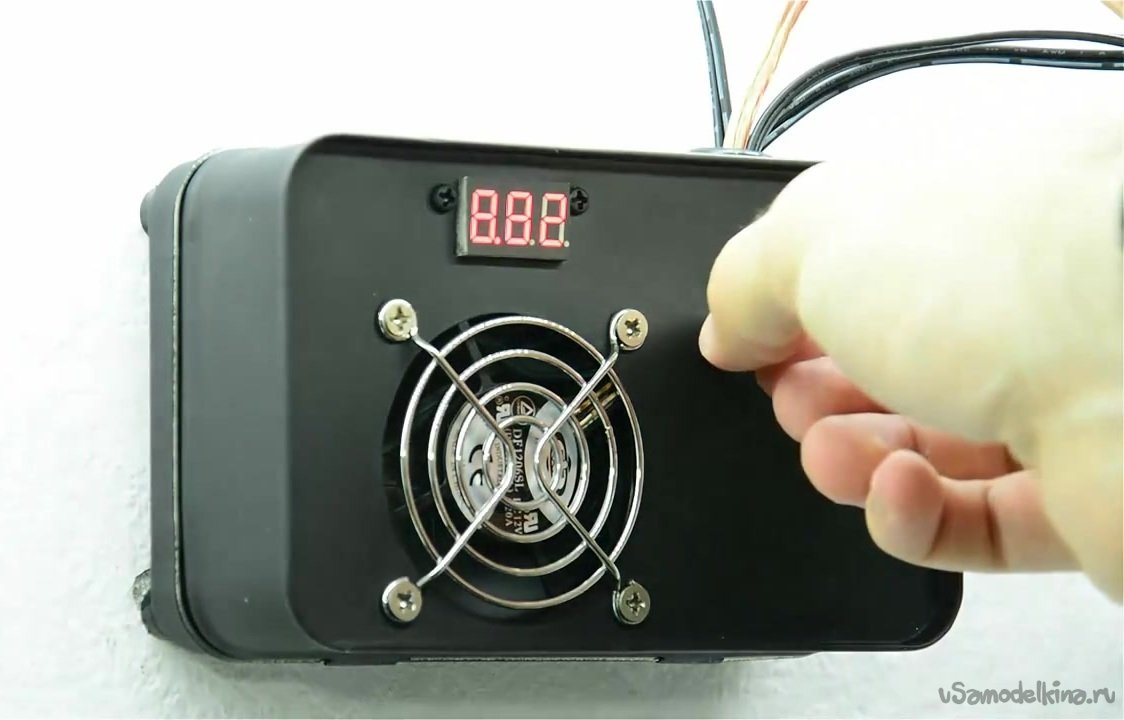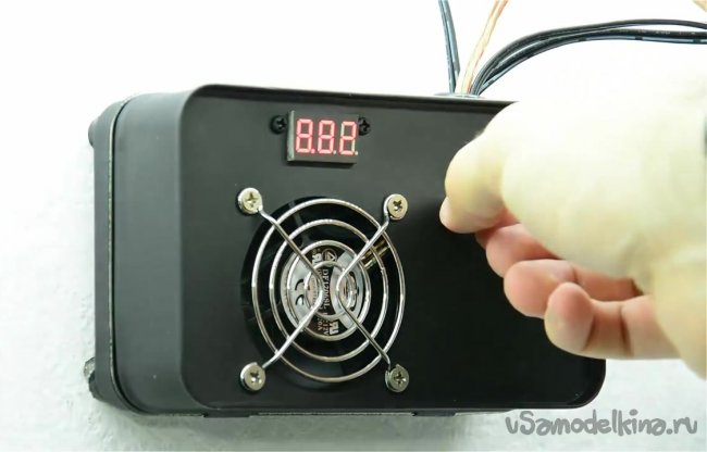 На выход платы подключаем то, что желаем контролировать и закрываем коробочку. Вентилятор можно подключить на постоянную линию, а вольтметр – на выход с платы.