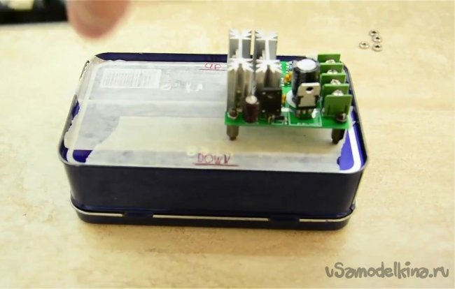 Отметим сразу, что при использовании сравнительно дешевых лед-контроллеров создается неприятное мерцание света, а данная самоделка предотвратит появление любого типа мерцания и не будет вредить зрению. Регулятор напряжения, по словам автора идеи, можно приобрести на известной китайской онлайн площадке Aliexpress за 5 долларов. Регулятор представляет собой широте импульсную модуляцию, однако он не дает скачков напряжения на выходе. Помимо этого, он имеет маленький размер и работает на напряжении до 24 вольт и выдерживает нагрузки до 10 А. Что касается коробки, то можно использовать любую металлическую коробку от духов или чего-то другого. Приступим.