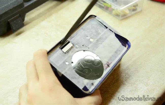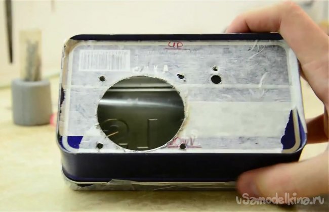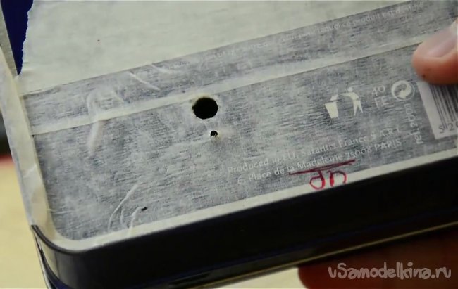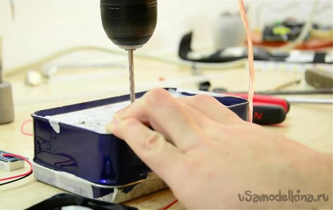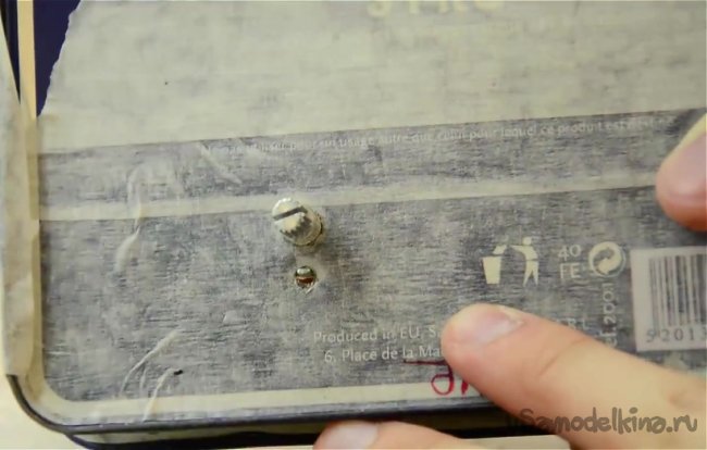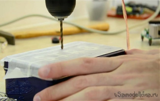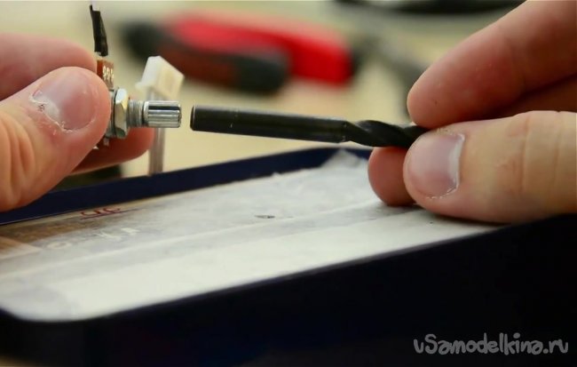 Также сверлим отверстие для потенциометра, который по словам автора, идет в комплекте вместе с регулятором. У отверстия, которое просверлено по диаметру потенциометра, нужно просверлить еще одно маленькое.