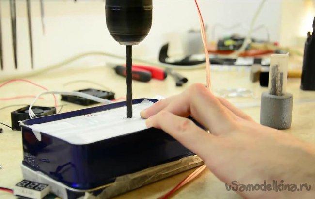 После этого можно приступить к сверлению отверстий под крепления регулятора и вентилятора.