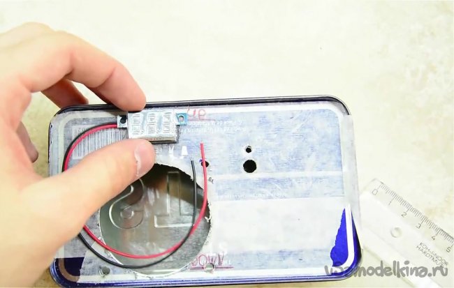 Обводим маркером вольтметр, отметив таким образом место выреза.
