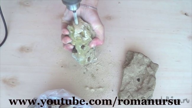 Шаг 1: Для начала в основном плоском камне нужно просверлить по средине отверстие и в другом камне, более похоже на цилиндр.