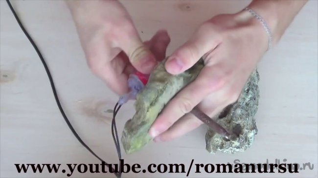 Шаг 2: Затем вставляем трубку от насоса, в отверстие основного камня, а после в другой, и хорошенько проклеиваем клеевым пистолетом.