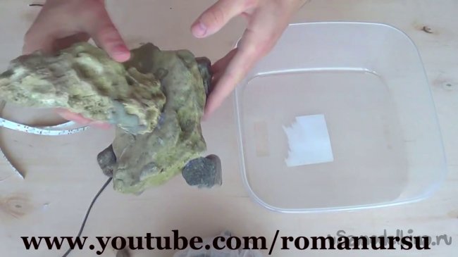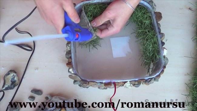 Шаг 3: После чего приклеиваем ножки из камней для того, чтобы насос не прижало и он свободно работал.