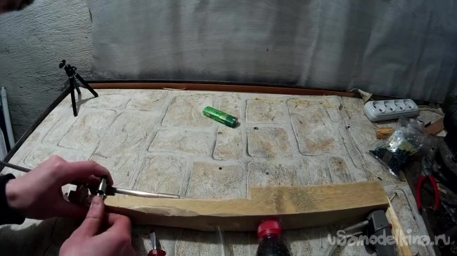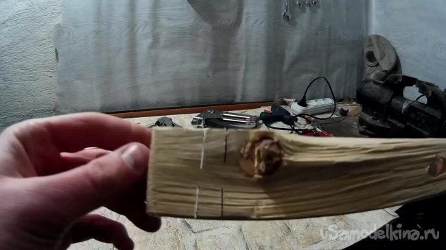 Теперь на бруске нужно сделать небольшие ложбинки для второго хомута. Отметим, что этот шаг можно пропустить, если хомут, используемый вами имеет достаточную длину для обхвата всего бруска.